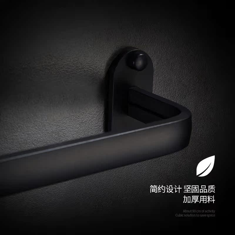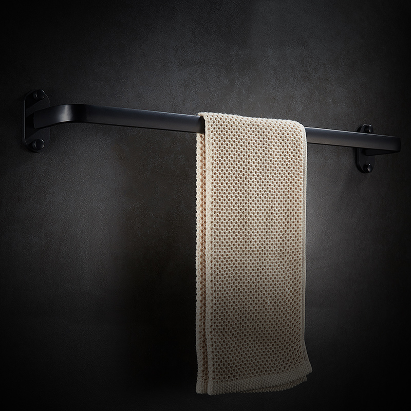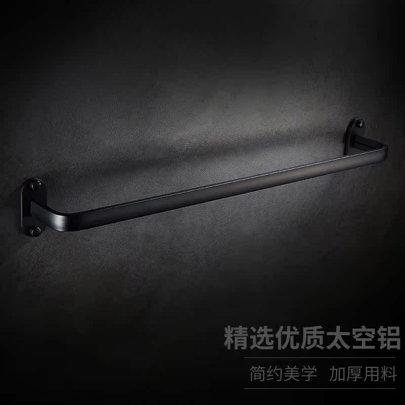 Punch-free space aluminum towel rack powder room towel rack black Nordic hanging rod bathroom towel rack towel single rod