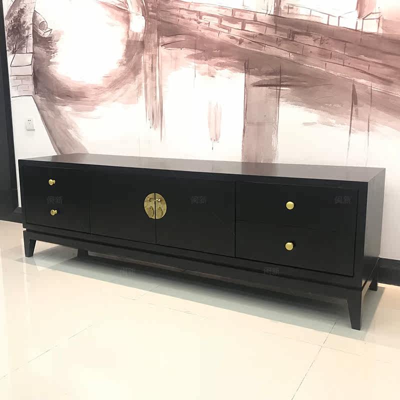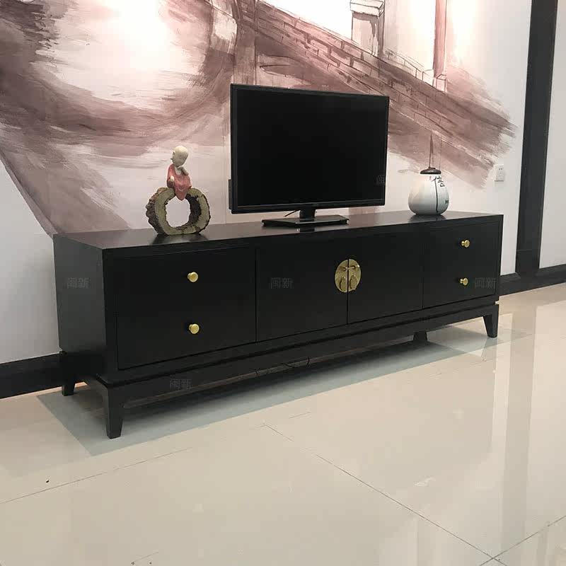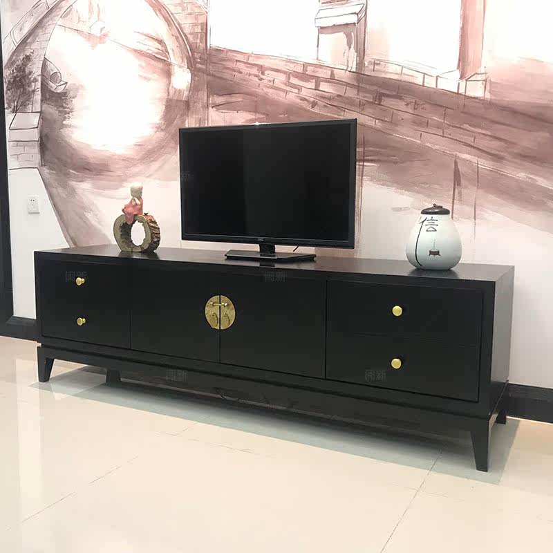 New Chinese solid wood TV cabinet modern minimalist Zen living room bedroom ash wood 2 meters storage TV cabinet custom