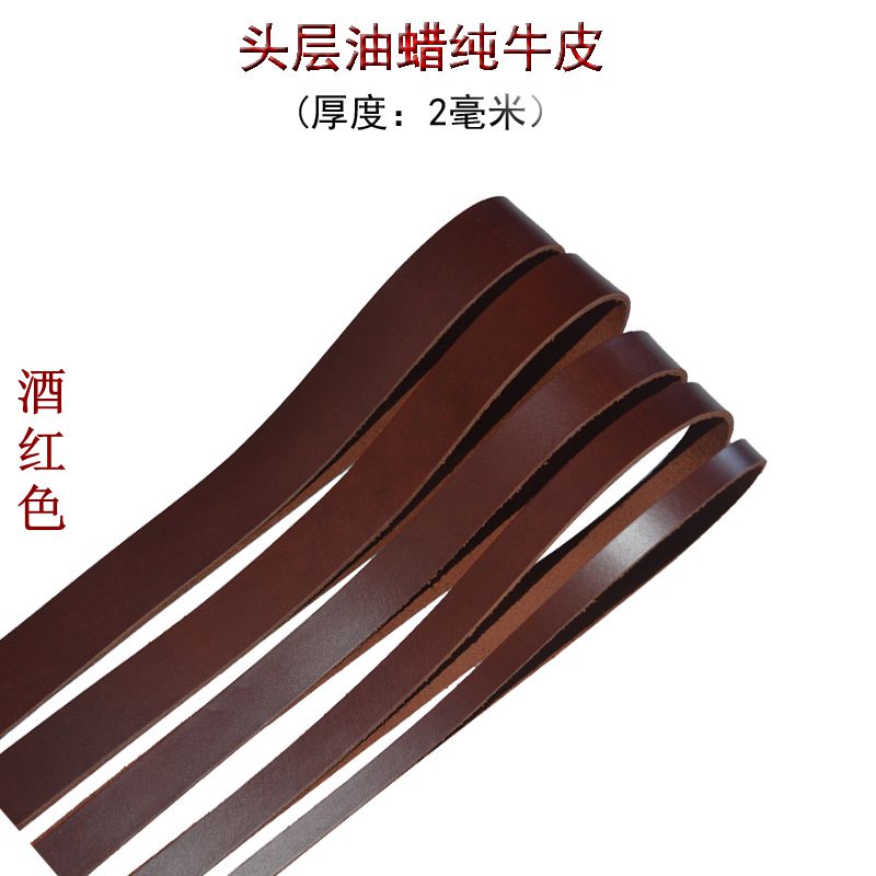 Oily wax leather top layer pure cowhide wine red leather rope bag with rope drawstring diy bracelet necklace braided rope leather strip