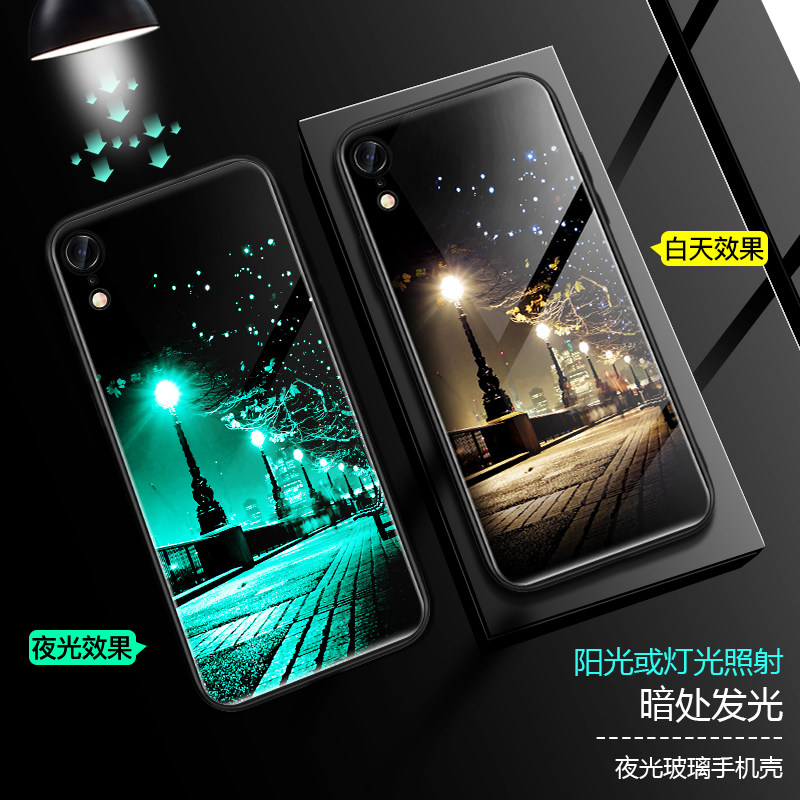 New Apple xr mobile phone case luminous glass iphonexr all-inclusive anti-drop apple x protective cover iphonexsmax trendy brand personality male apple xs net red iphonex