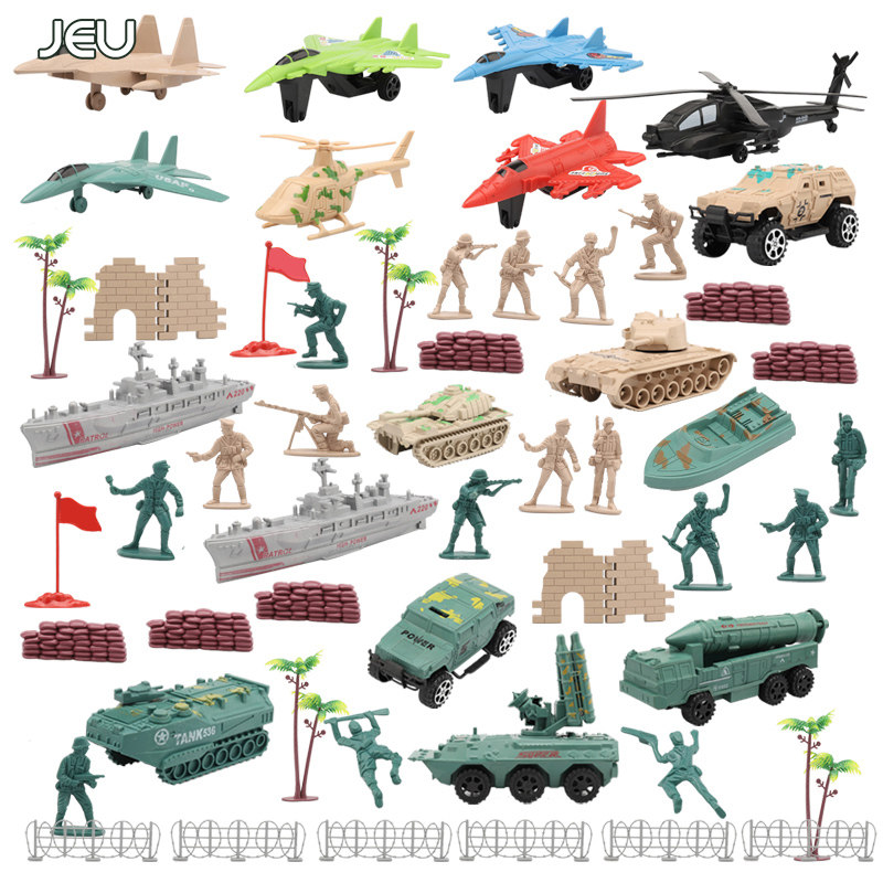 JEU Large Toy Soldier Pack with 82 pcs Tank Aircraft Children Military Toy Gift