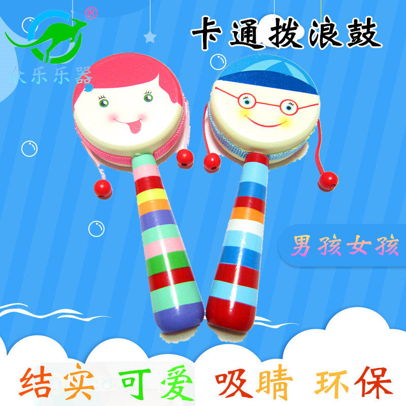 Dial Wave Drum Baby Toy Cartoon Woody Hand Drum Rocking Bell 0-1 Year Old Children Baby Teach Wooden Toys Early