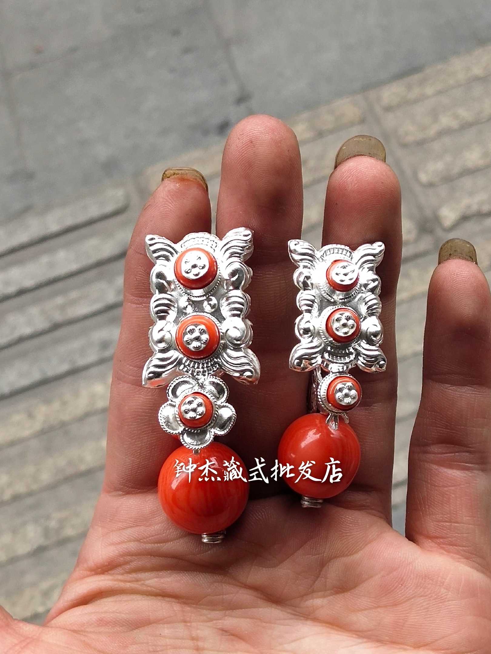 Zhongjie Tibetan style shop sterling silver Tibetan handmade earrings ethnic style Tibetan dance show earrings