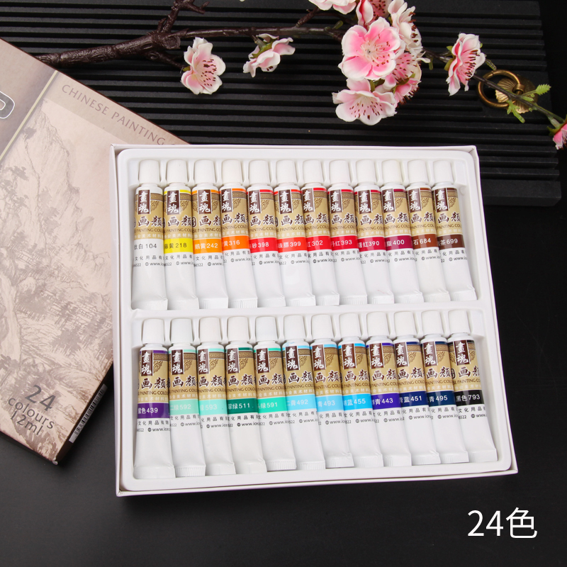 Chinese painting pigment Ice heart painting soul 12 colors 24 colors set High concentration watercolor Gongbi painting Chinese painting pigment