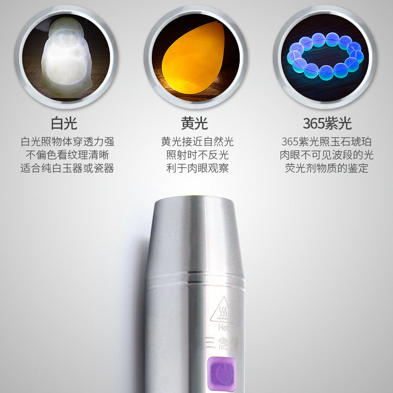 Photo Jade Special Bright Light Flashlight Professional Appraisal Jewelry Experience Emerald Look At The Super Bright Purple Light of the Fun Learning Treasure