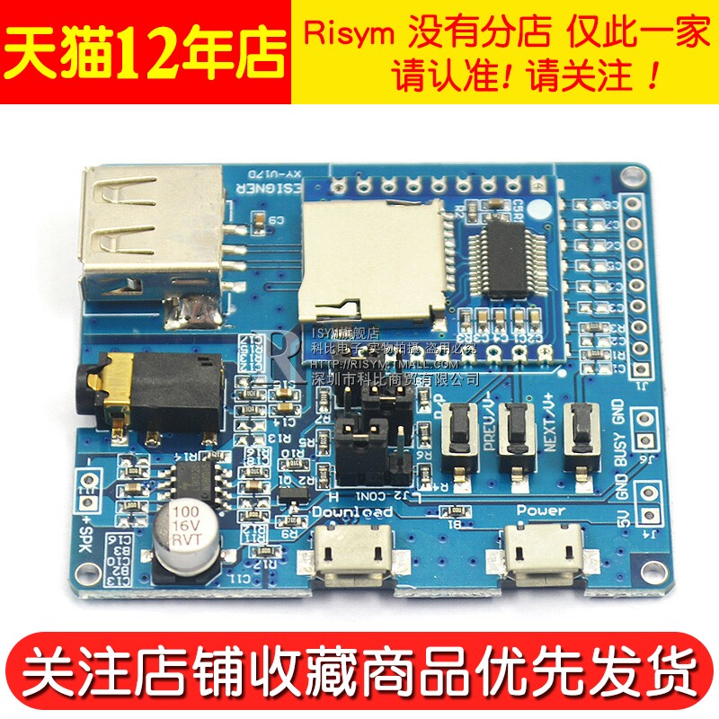 Voice module development board serial port control voice module single chip IO control SD TF card MP3 module