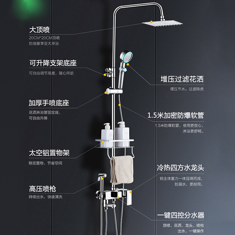 6th Generation Special Offer A (Three-Gear Faucet + Round Boost) 6th Generation Special Offer B (Three-Gear Faucet + Square Boost) 7th Generation Classic A Model (Four-Gear Faucet + Upgrade Boost + High Pressure Spray Gun) 7th Generation Classic B Model (Four-Gear Faucet + Upgraded Boost + High Pressure Spray Gun) 8th Generation Upgrade Model A (Square Three-Gear Faucet + Upgraded Booster) 8th Generation Upgrade B Model (Square Three-Gear Faucet + Upgrade Booster) 8th Generation Upgrade C Model (Square Three-Gear Faucet + Beauty Skin Filter Booster + 10 Large Inch Top Spray) 8th Generation Upgrade Model D (Square Three-Gear Faucet + Beauty Skin Filter Booster + 10-inch top spray) 9th generation flagship A model (square four-stop faucet + filter booster + high-pressure spray gun) 9th generation flagship B model (square four-stop faucet + filter booster + high pressure spray gun) 9th generation flagship C model (square four-stop faucet + beauty skin filter pressurization + high pressure spray gun + 10 inch large top spray) 9th generation flagship D model (square four-stop faucet + skin filtration supercharging + high pressure spray gun + 10-inch large top spray) 7th generation luxury suit (5th generation A model + shelf 5-piece set + upgrade to 10-inch large top spray) 7th generation luxury set (5th generation B model + Shelf 8 set + upgrade to 10-inch large top spray) 8th generation luxury set (6th generation C model + shelf 5 pieces set) 8th generation luxury set (6th generation D model + shelf 8 pieces set) 9th generation luxury set (7th generation C model + shelf 5-piece set) 9th generation luxury set (7th generation D model + shelf 8-piece set) collection plus order return 10 yuan to send annual film and television membership (optional)