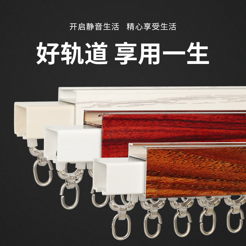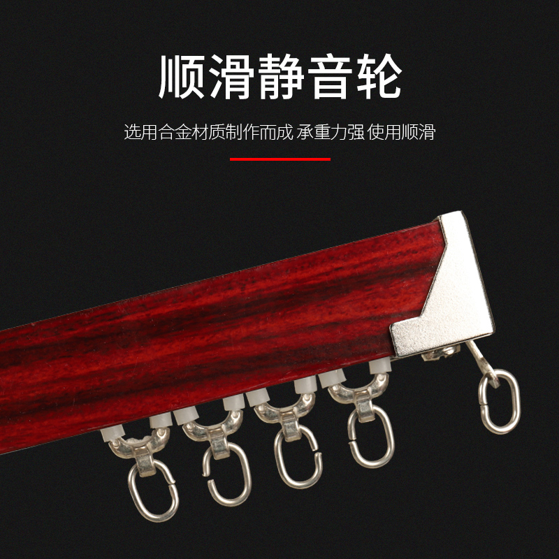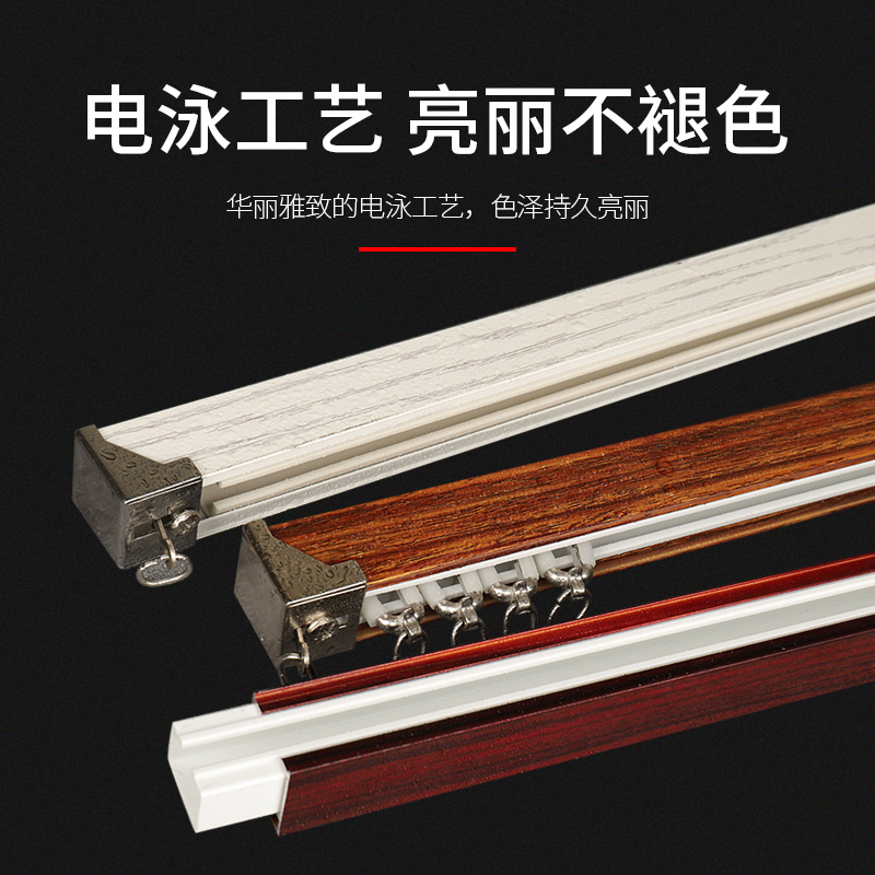 Thickened aluminum alloy wood grain curtain track Mute curtain rod Roman rod Single track slide pulley Top-mounted side-mounted