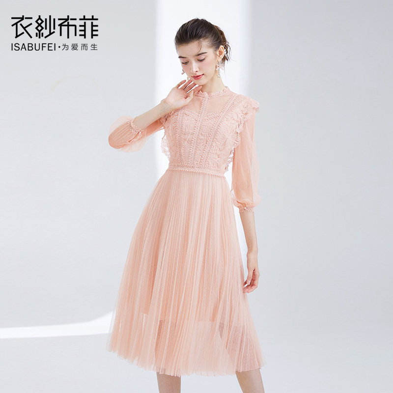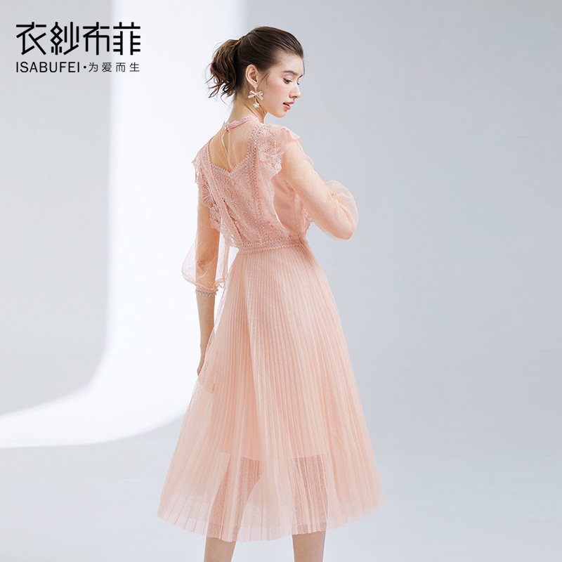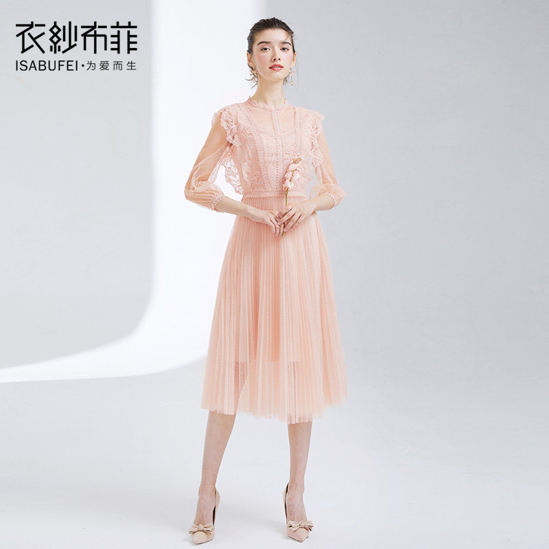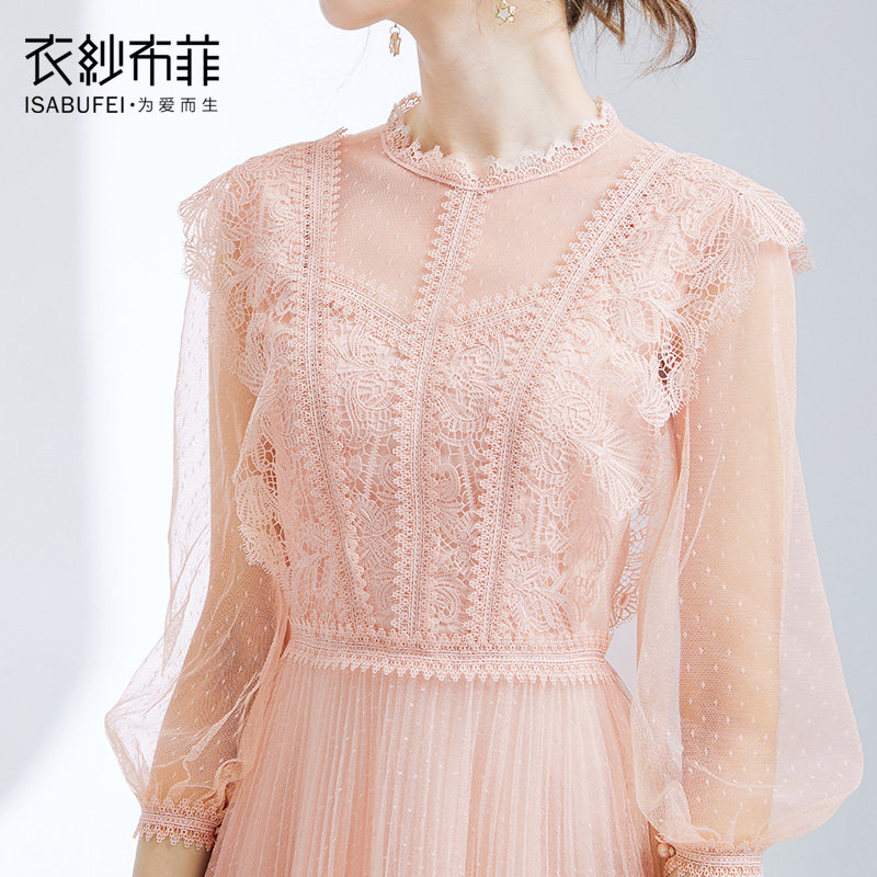 Pink Coral Gown Skirt Woman Medium Long Version Gentle Skirt Super Fairy Girl Web Yarn Lace Dress Famous for a Little Fragrant Wind Dress