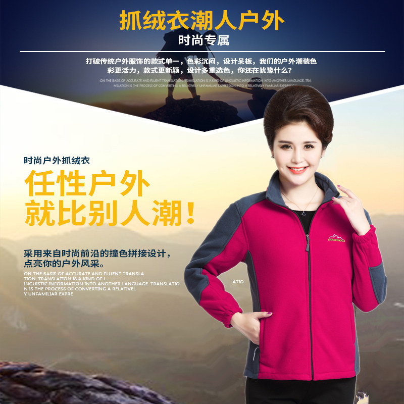 Middle-aged and elderly warm fleece outdoor sports women's padded polar fleece coat morning exercise mother casual coat