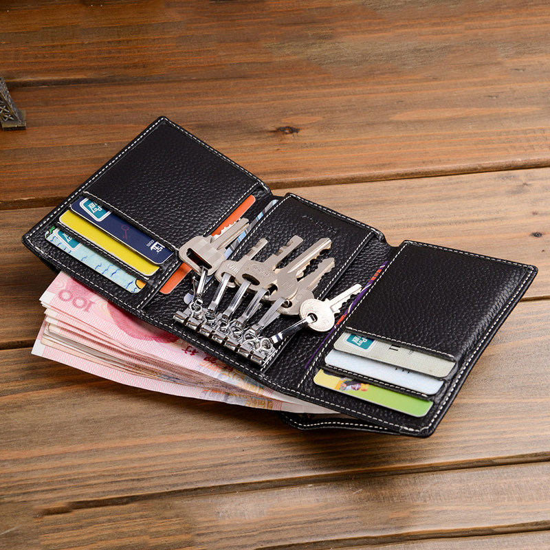 Wallet Key Pack One male multifunctional two-in-one real leather large capacity card package female creative key packet small