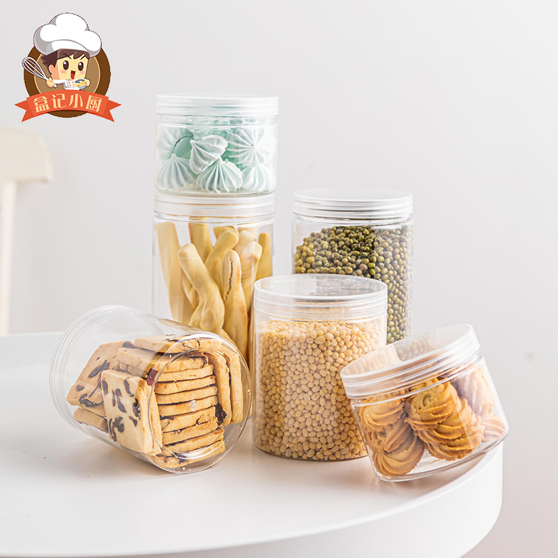 Plastic cookie jar transparent cookie box baking sealed jar food jar with lid round packing box multi-style 6 pcs