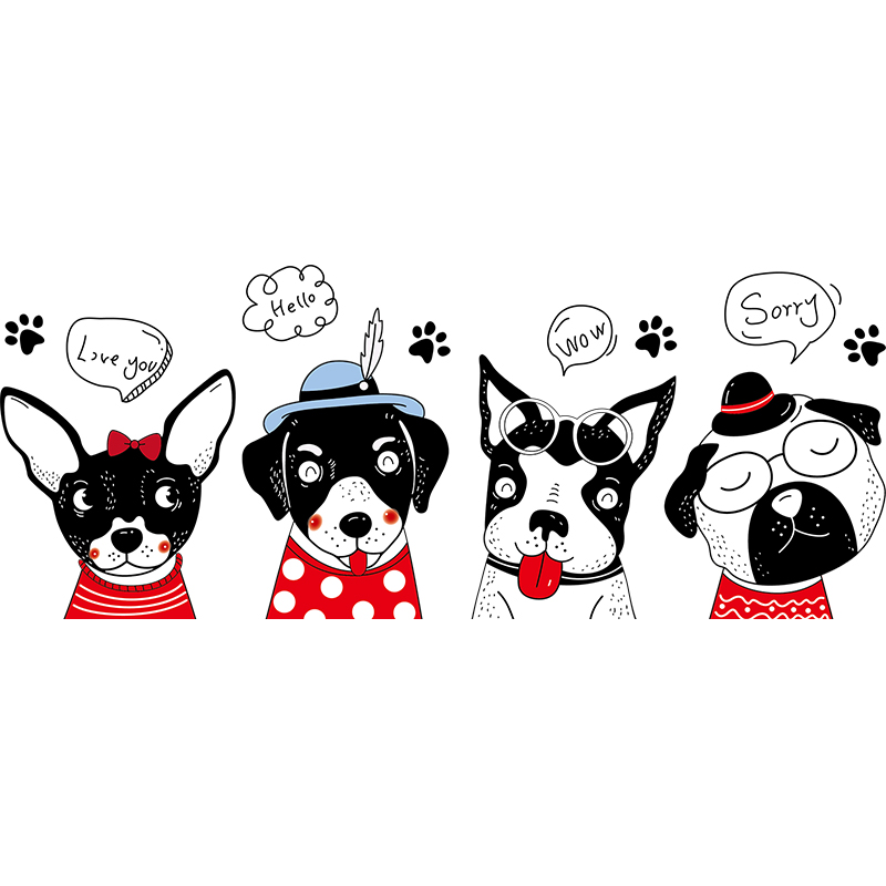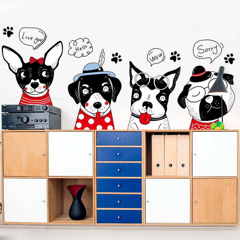 Cute Dogs Wall Stickers Pet Shop Stickers Nets Red Ins Wall Decorations Bedroom Dorm Stickers Wall paper Self-adhesive