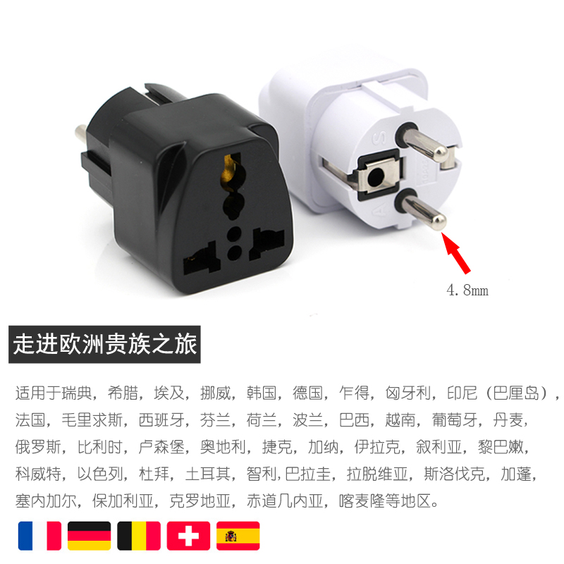 Two round feet European standard German standard travel conversion plug France Germany Netherlands Korea Russia North Europe converter
