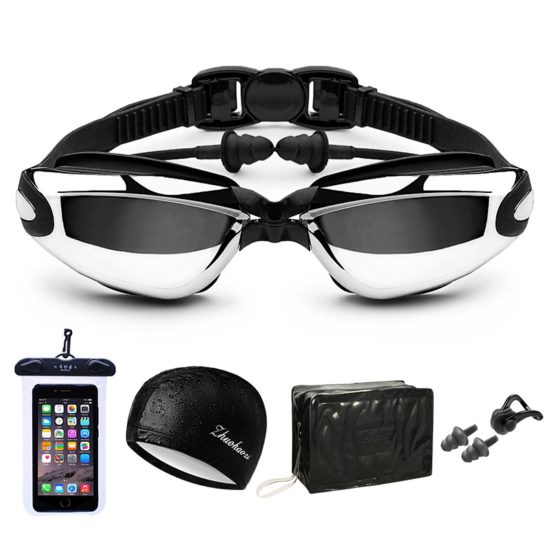 Goggles HD myopia anti-fog men's and women's swimming glasses flat light degree large frame waterproof swimming cap swimming goggles set 2021