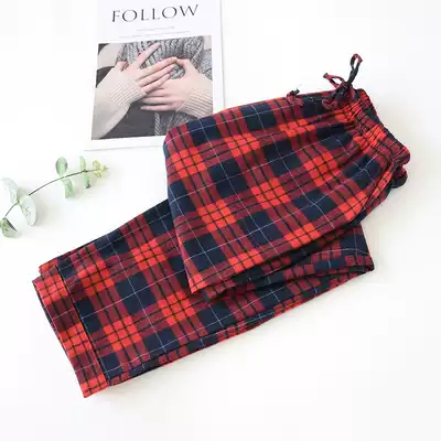 Spring and summer ladies cotton flannel home pants flannel plaid trousers thin loose large size casual can wear pajama pants
