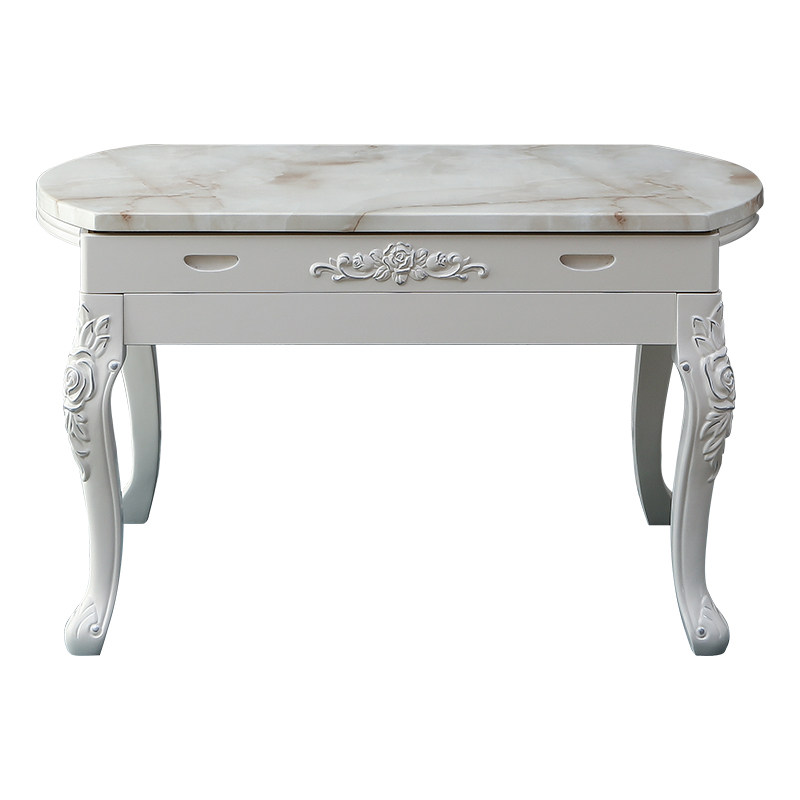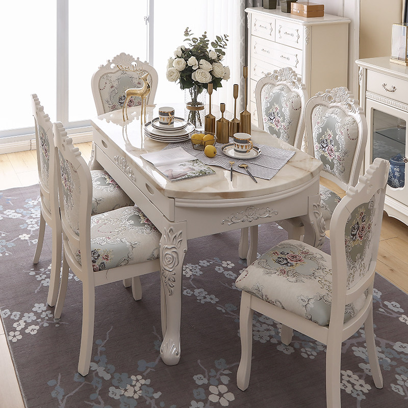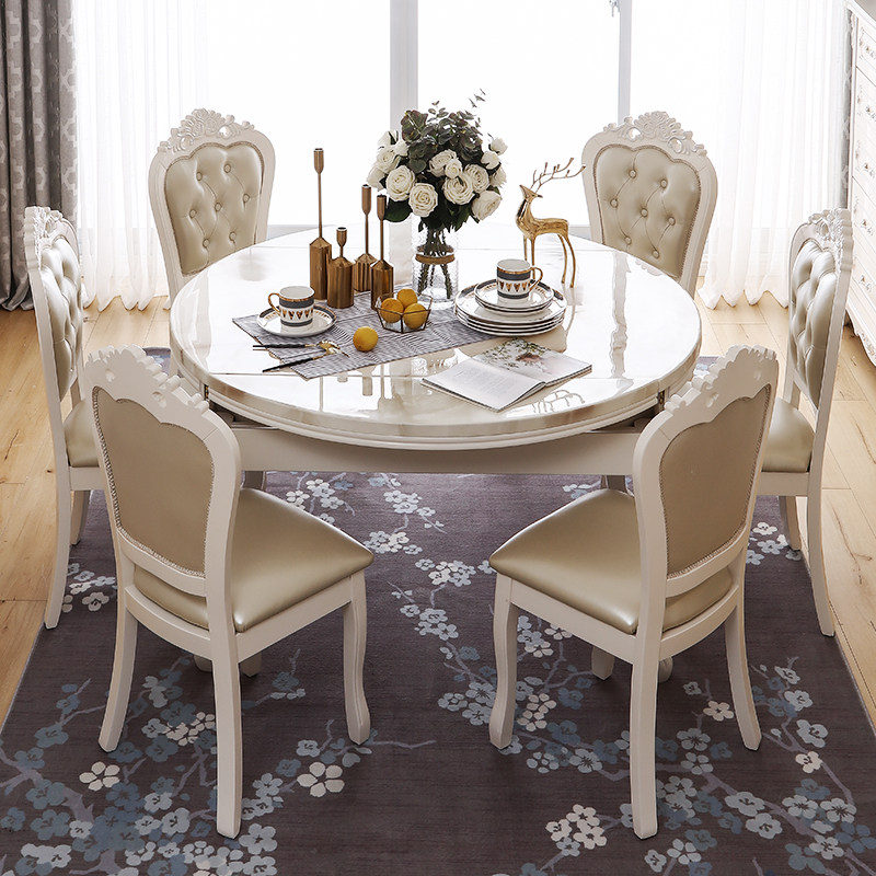 European-style dining table and chair combination marble solid wood telescopic living room round table small apartment household dining table multi-functional