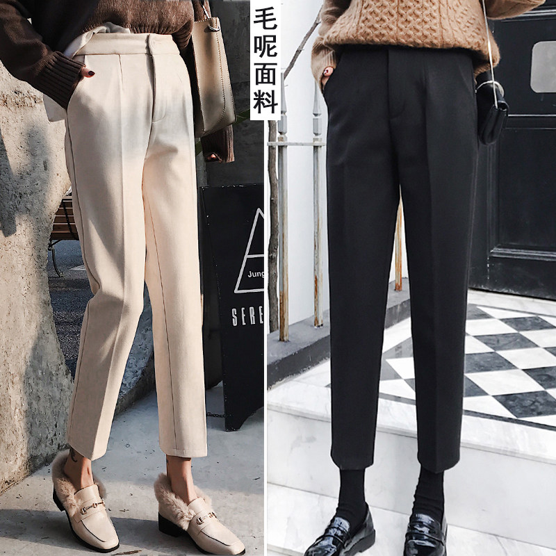 ulzzang Korean version trousers women's high waist large size straight pipe trousers black nine-point robe pants suit pants loose