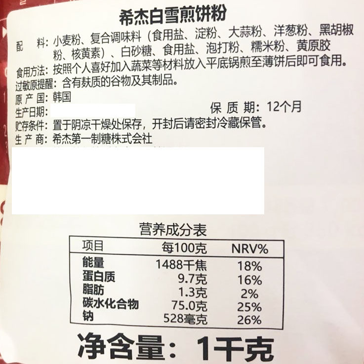 Korean CJ cake powder Xijie Snow crispy pancake powder Korean Kimchi cake Seafood potato cake 1kg baking raw materials