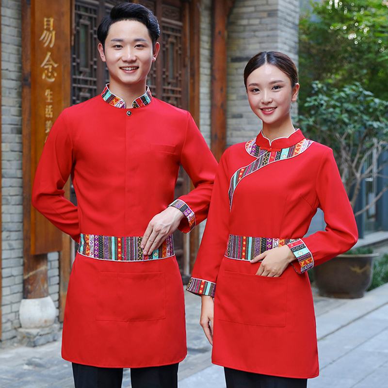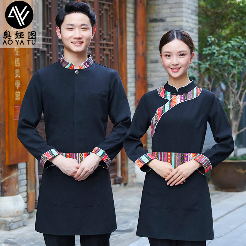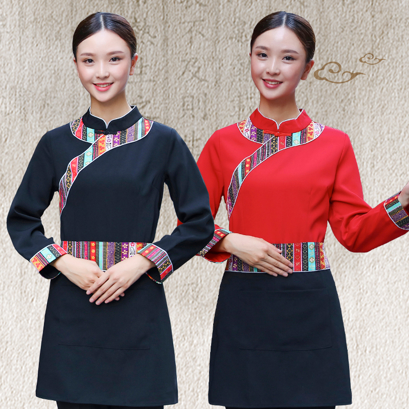 Hotel work clothes long-sleeved characteristic ethnic style Chinese-style dining room catering hot pot restaurant hotel waiter work clothes female