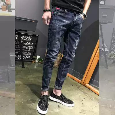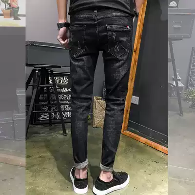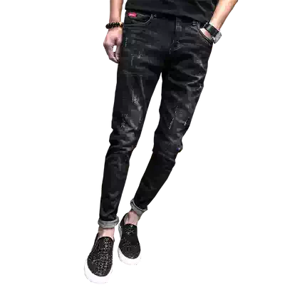 2020 autumn jeans men's slim Korean version of the trend brand black hole nine-point casual small feet long pants