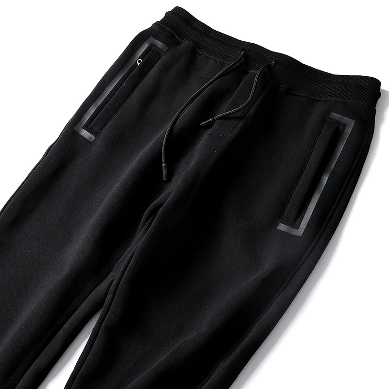 Spring Men's Pure Cotton Elastic Small Straight Knitted Sweatpants Black Large Size Elastic Waist Drawstring Sports Trousers Black