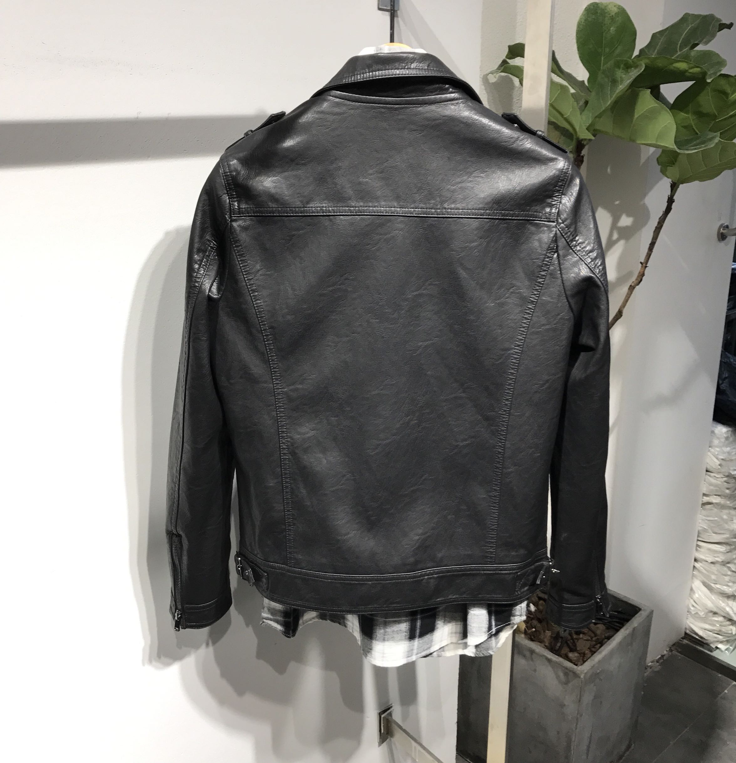 2022 Spring Autumn New Men's Turns in Pure Color Casual Leather Jacket Korean version trendy fashion short jacket