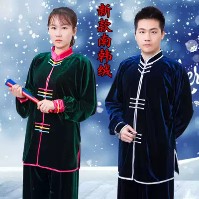Taiji clothing female South Korean velvet autumn and winter Taijiquan clothing practice clothing color buckle middle-aged and elderly men gold velvet thickened warmth