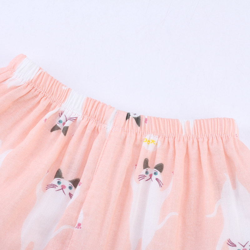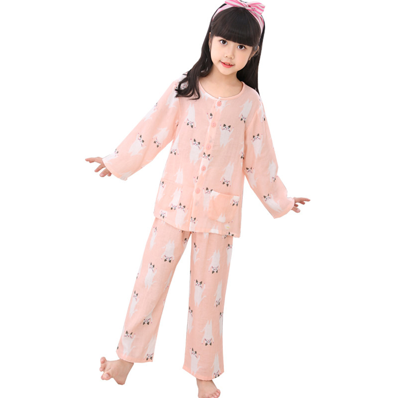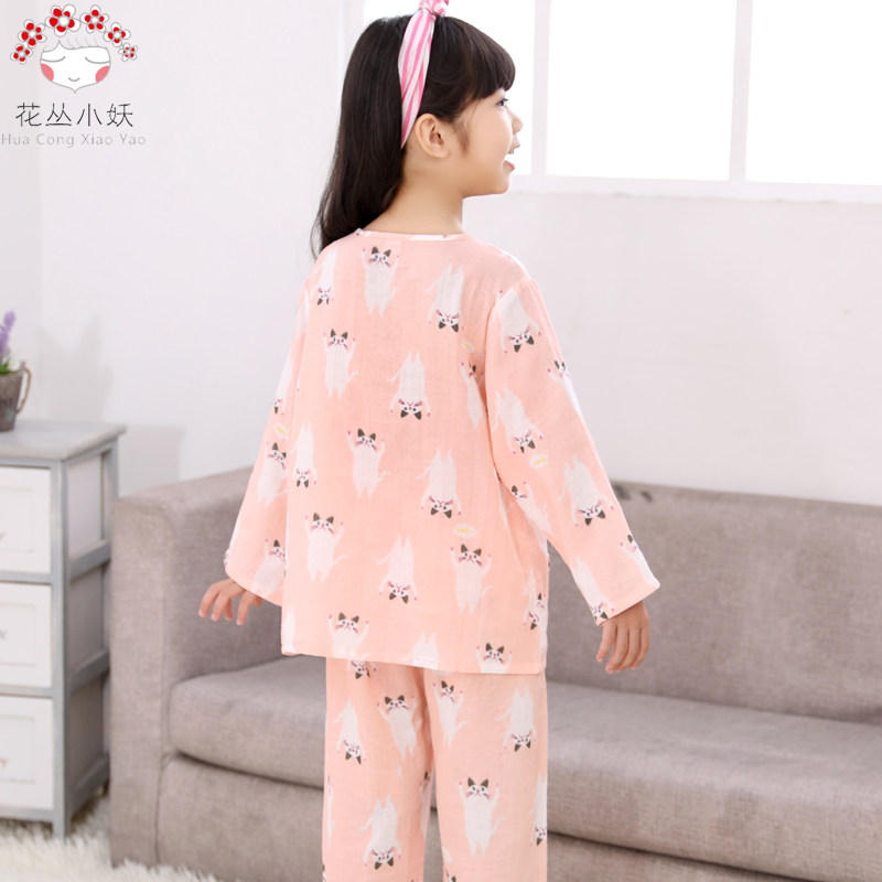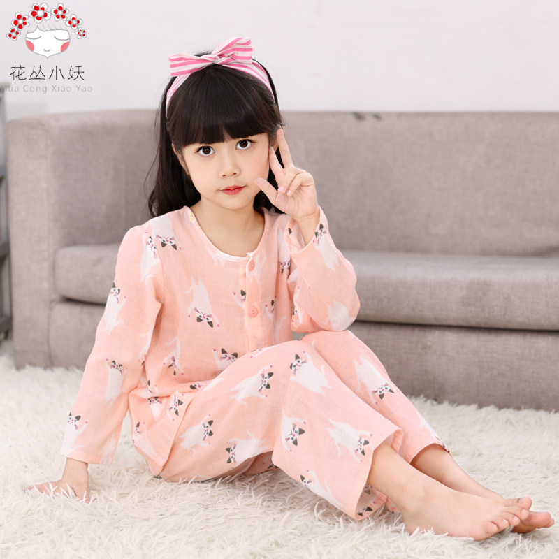Spring and Autumn children's boys' and girls' pure cotton double-layer yarn round neck cardigan long-sleeved thin set children's pajamas home clothes