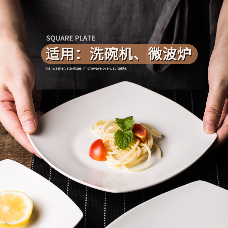 Pasta plate Western food pasta white tableware household ceramic pure white creative personality square plate