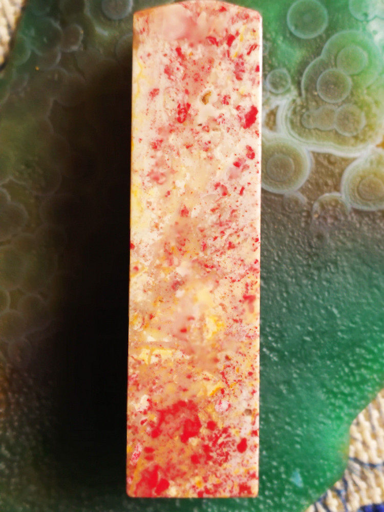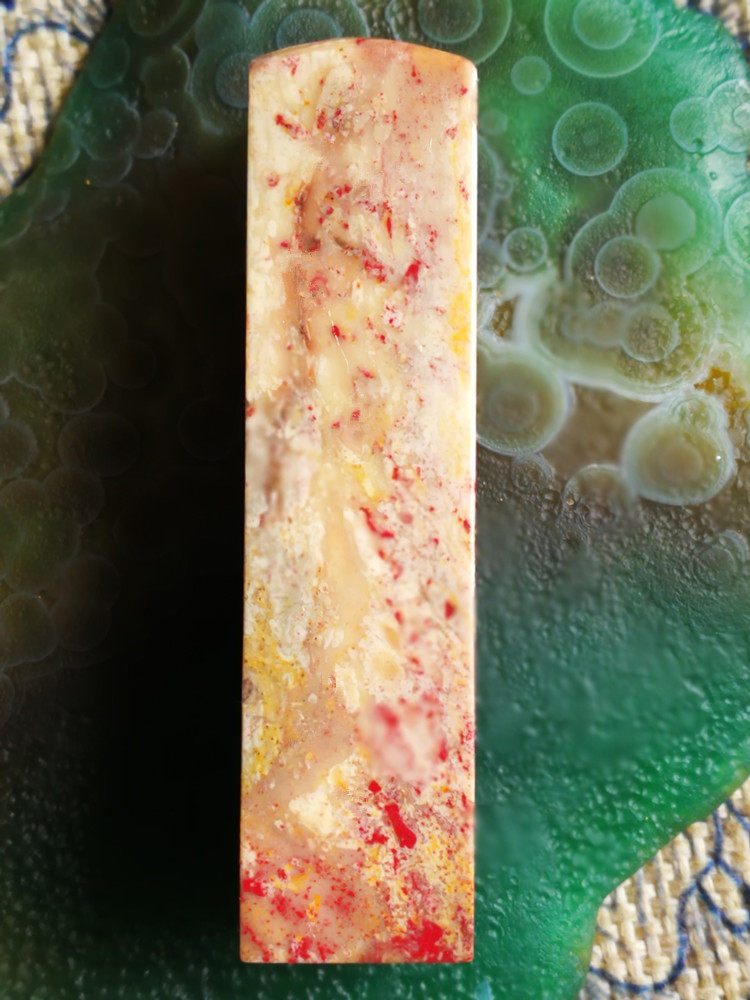 Natural Changhua chicken blood stone seal (full of star blood) nephrite bottom with blood on all sides, Bahrain Shoushan Laoguotian yellowstone