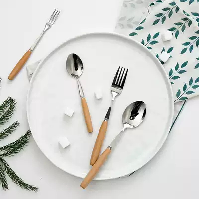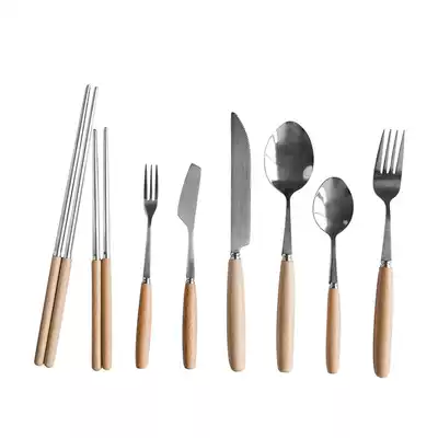 inscription beech wood handle stainless steel knife and fork spoon chopsticks western cutlery steak knife and fork coffee spoon household
