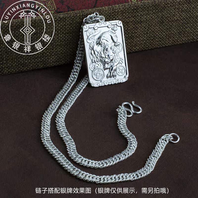 Men's Necklace Pure Silver 99 Horsewhip Chain Handmade Silver Chain Net Red Necklace Men Trendy Korean Version Simple Men's Thick