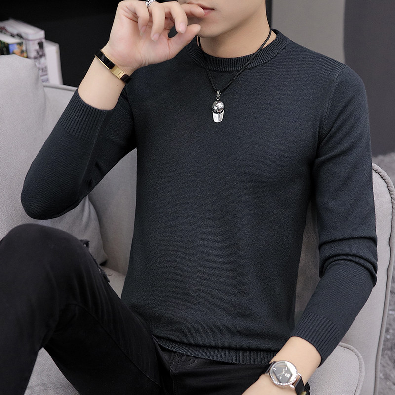 2022 Spring and autumn sweater men and Korean edition of the trend of pure black paste blouse men with knitted shirt
