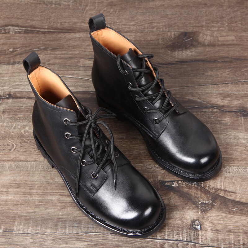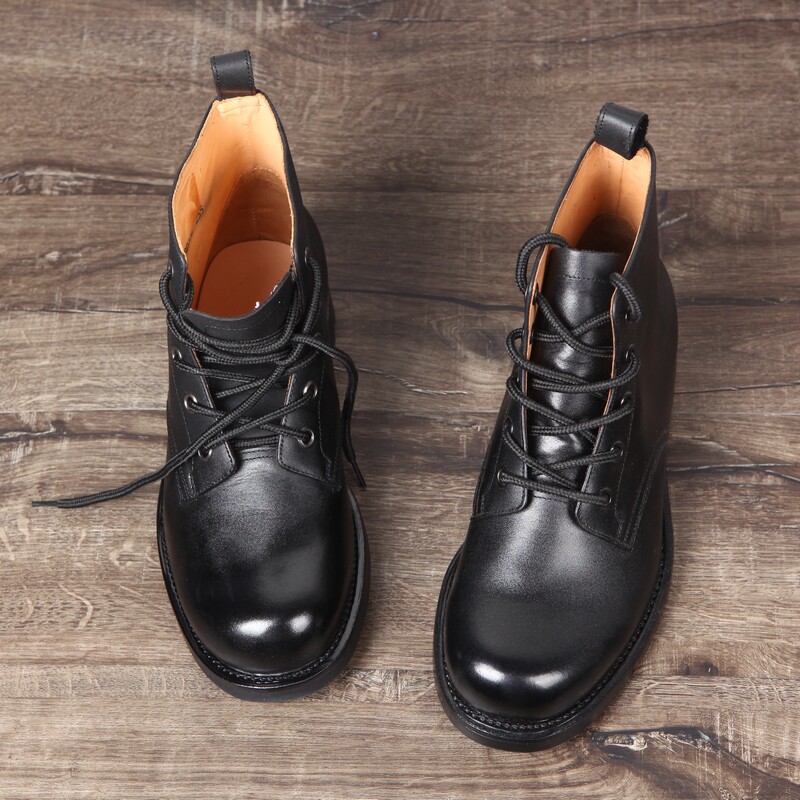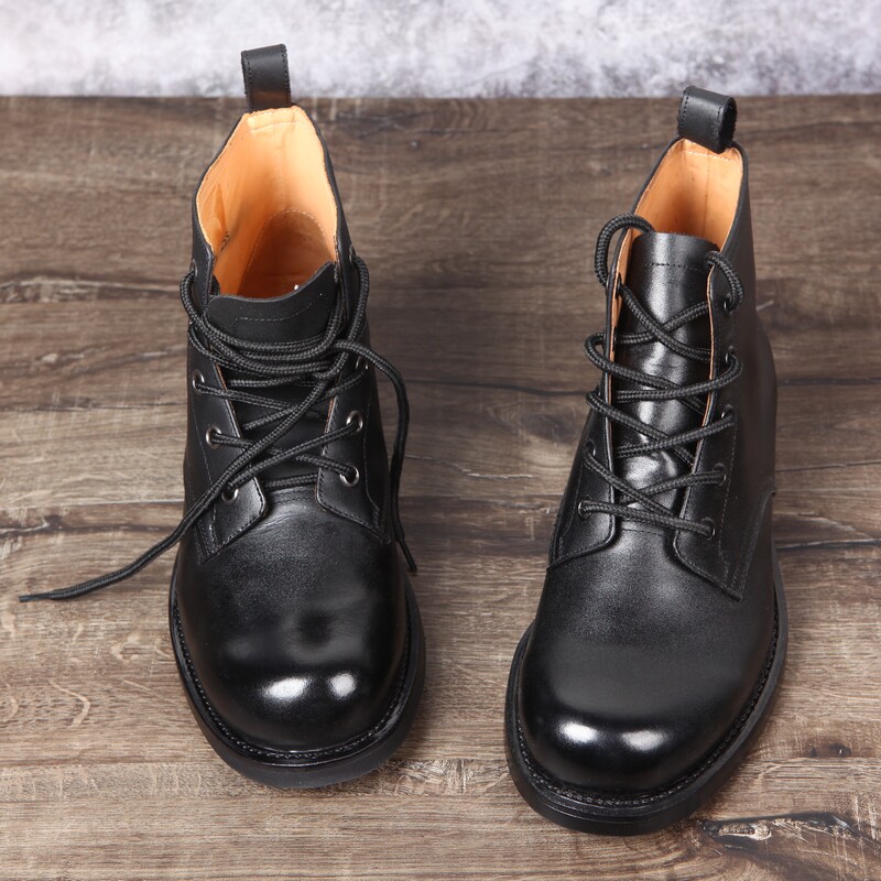Retro 87 high-waisted cadre leather shoes round head lace-up high-barreled naval boots Goodyear on-line tire bottom Martin boots men