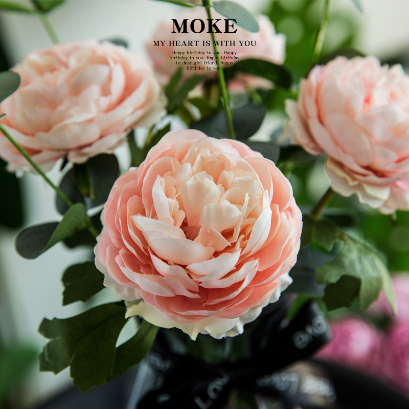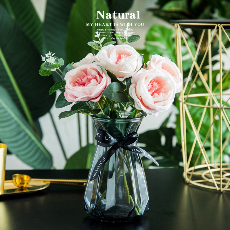 Creative flower arrangement simulation rose bouquet decoration fake flower dining table living room decoration flower indoor plastic peony silk flower