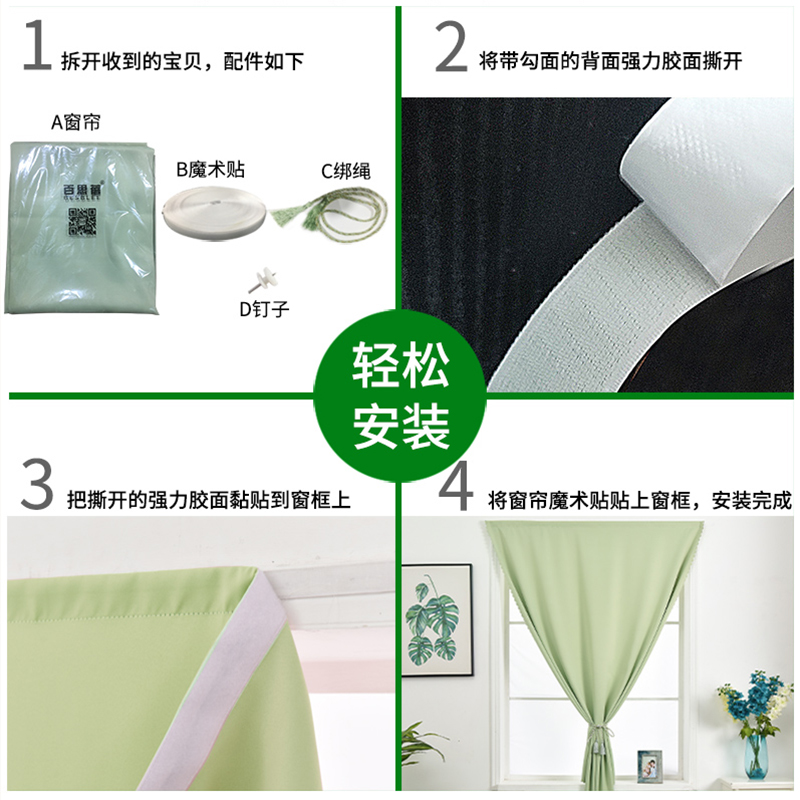 Free-to-punch Easy installation full shading rental room Short door curtain finished product minimalist modern net red princess magic adhesive curtains