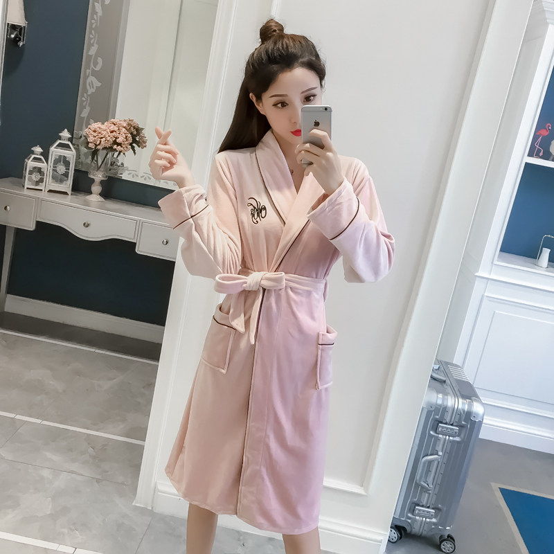 Spring Autumn Warm Sea Island Suede Pyjamas Winter Sexy Long Sleeves Flannel Velvet Pyjamas Woman's home Clothing Thin sleeping skirt Bathrobe