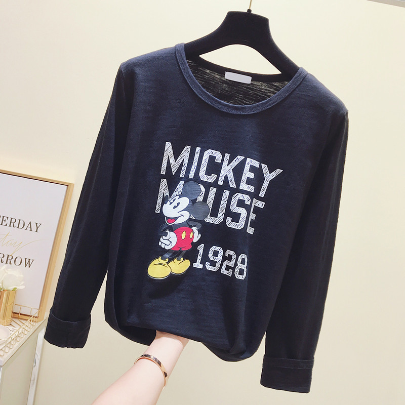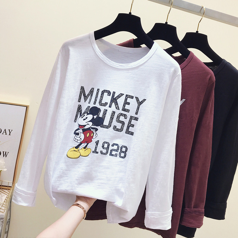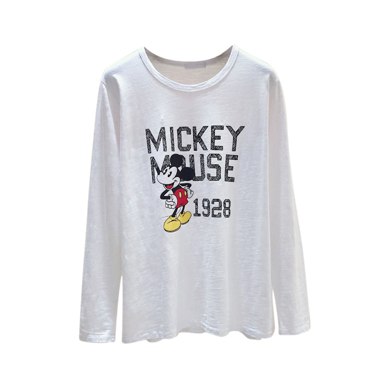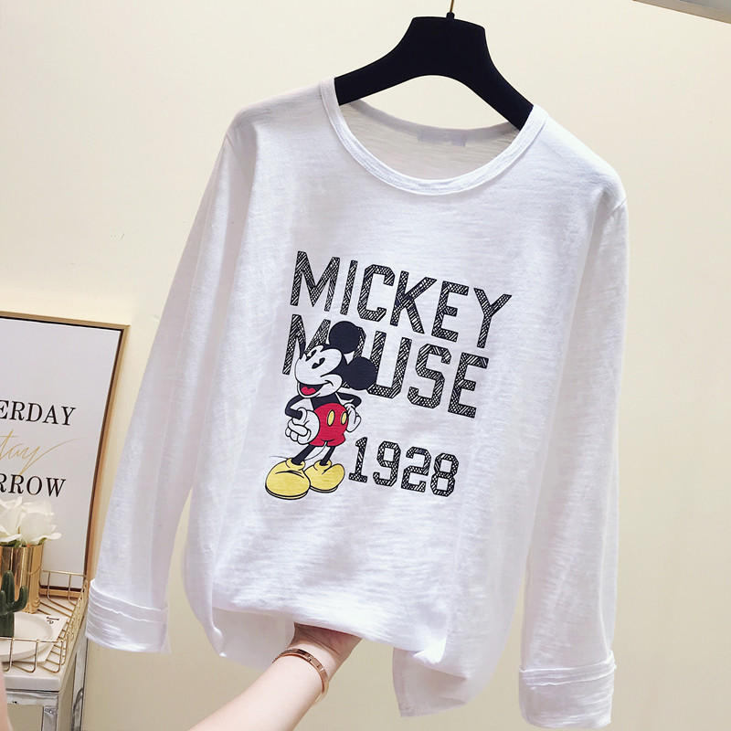 2022 Spring and autumn clothes with a new Korean version of white Bamboo Festival cotton cartoon printed loose long sleeve T-shirt female undershirt