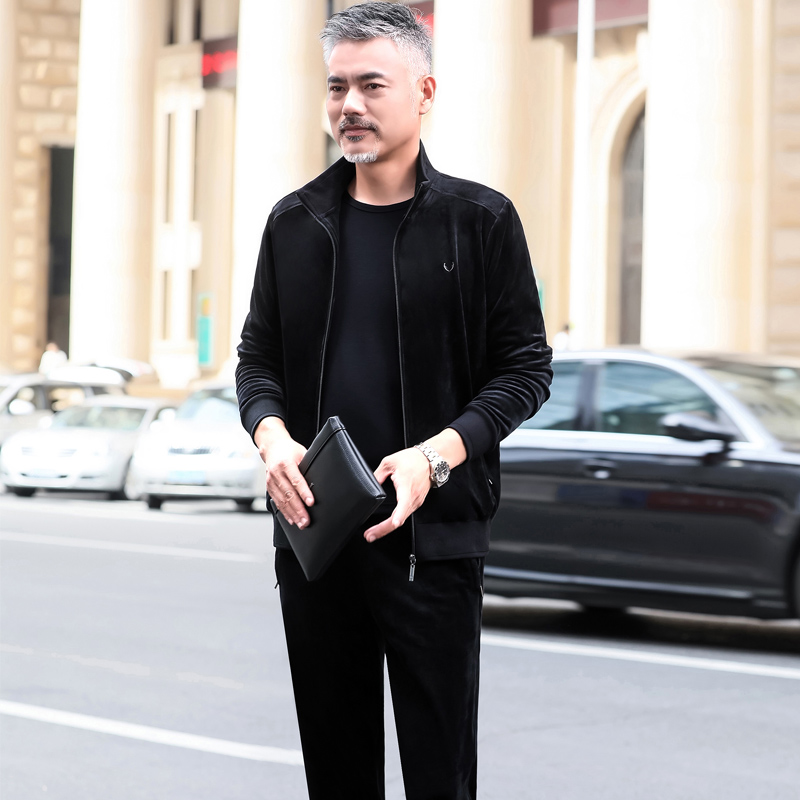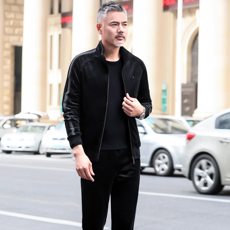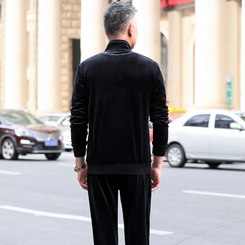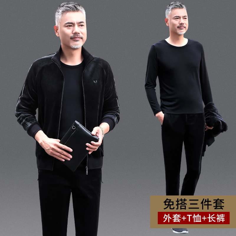 Middle-aged and elderly sportswear suit men's spring and autumn three-piece comfortable gold velvet fashion casual large size dad's clothes