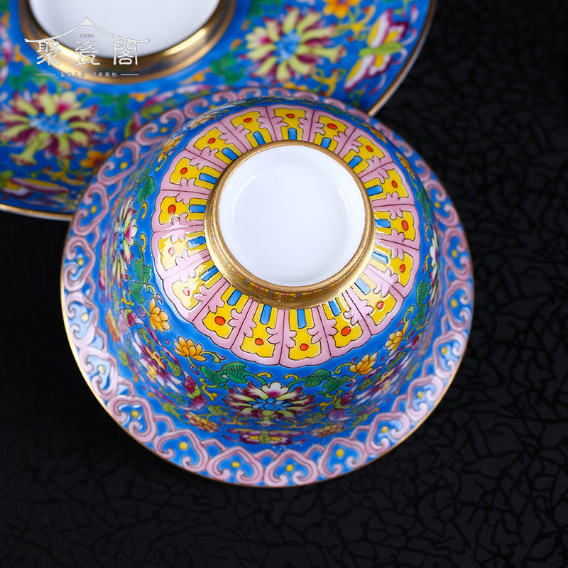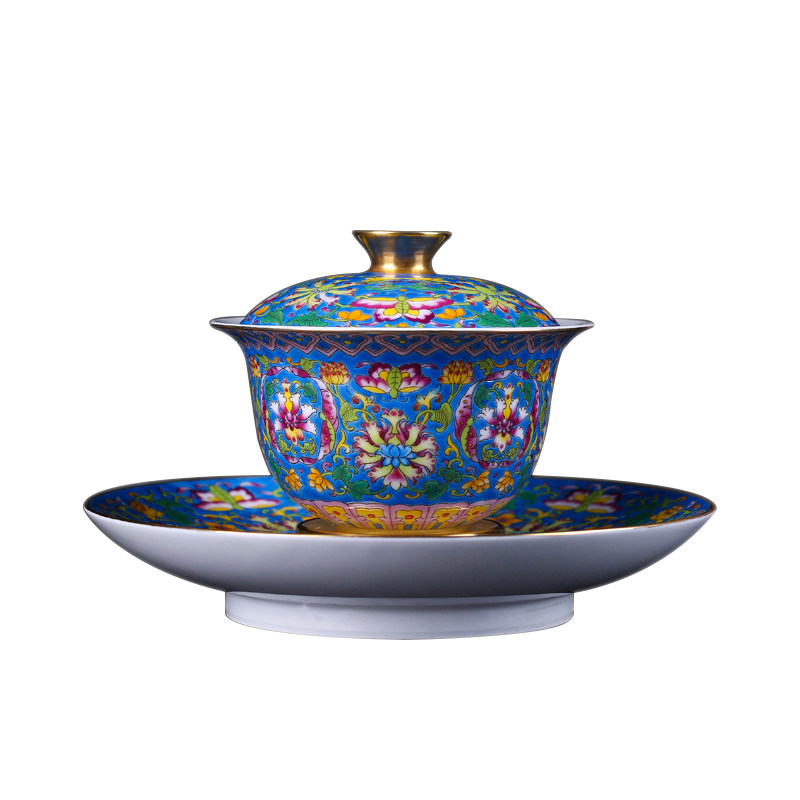 Jingdezhen Tangled Lotus Flowers full of enamel Painted Gold Three Talents Cover Bowl Imitation Ancient Porcelain Cover Cup Tea Cup Tea Bowl-Taobao