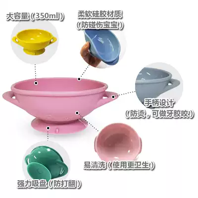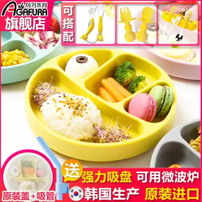 Imported children's dinner plate grid suction cup bowl Baby mini tableware one-piece baby silicone anti-fall non-staple food rice bowl