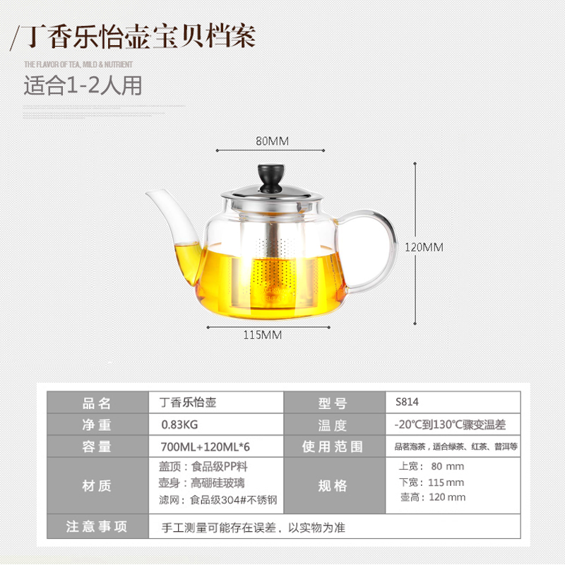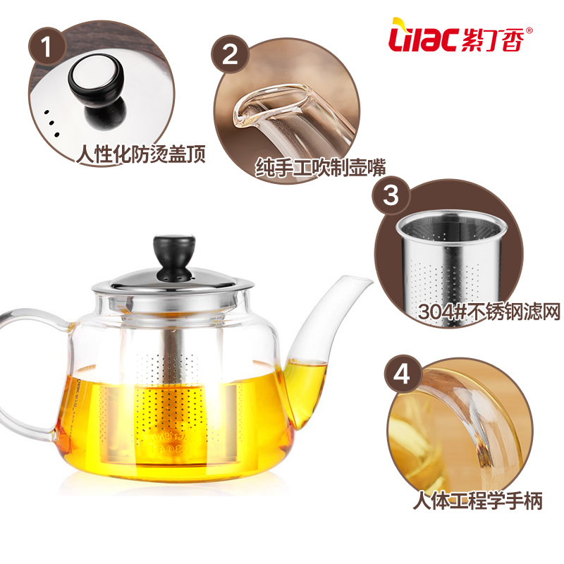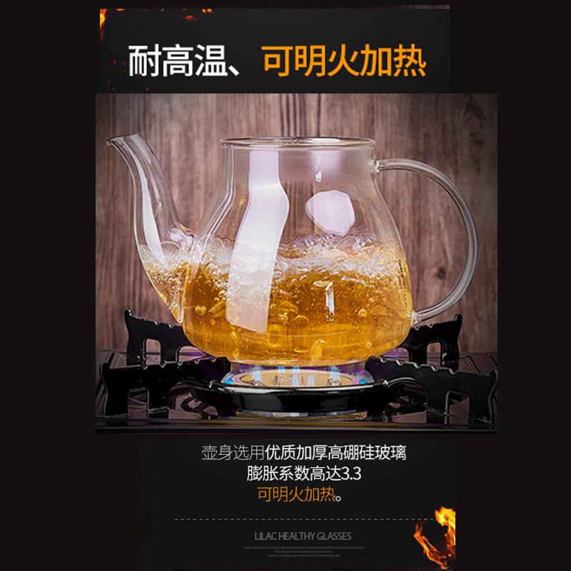 Violet high borosilicate glass teapot heat and explosion resistant to fire heating stainless steel filter tea set