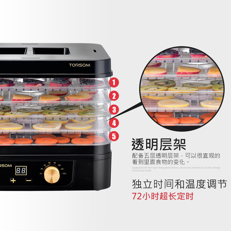 TORSOM Export German Dried Fruit Machine Home Food Dryer Fruits Vegetable Meat Food Dehydrated Air Drying Machine