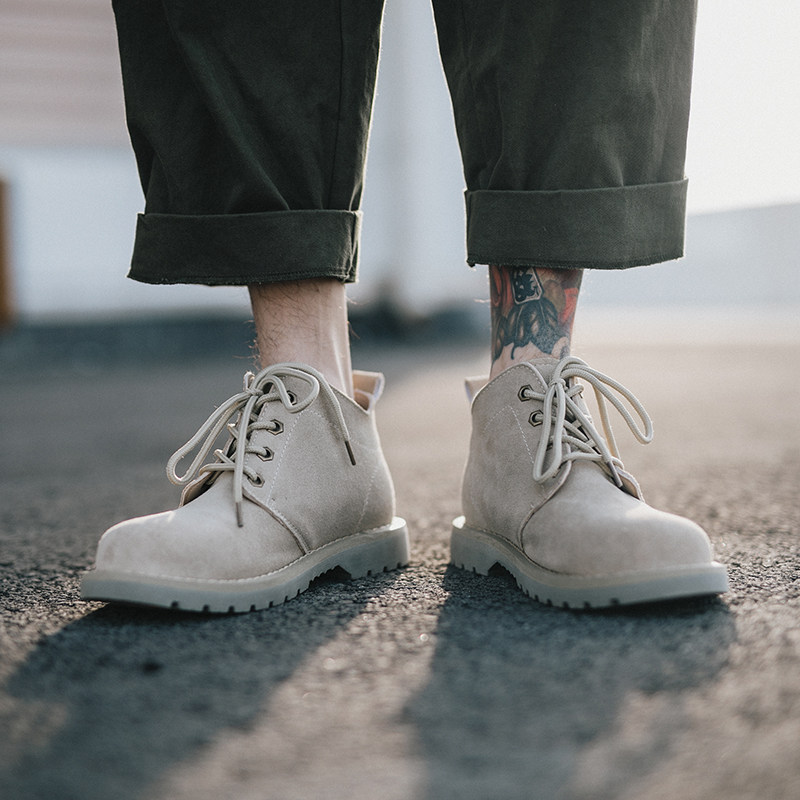 Martin boots men's mid-tube tooling boots winter leather casual suede high boots British retro Martin shoes men