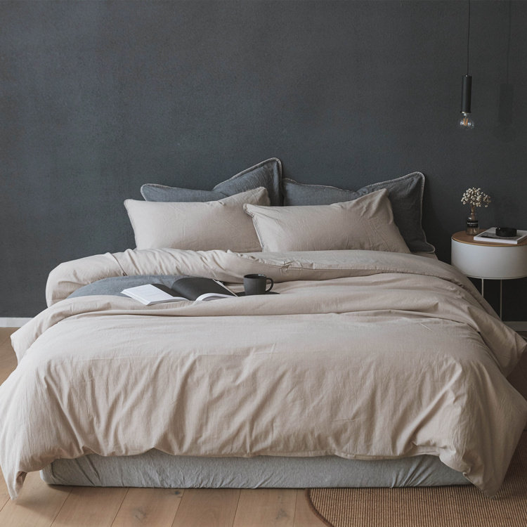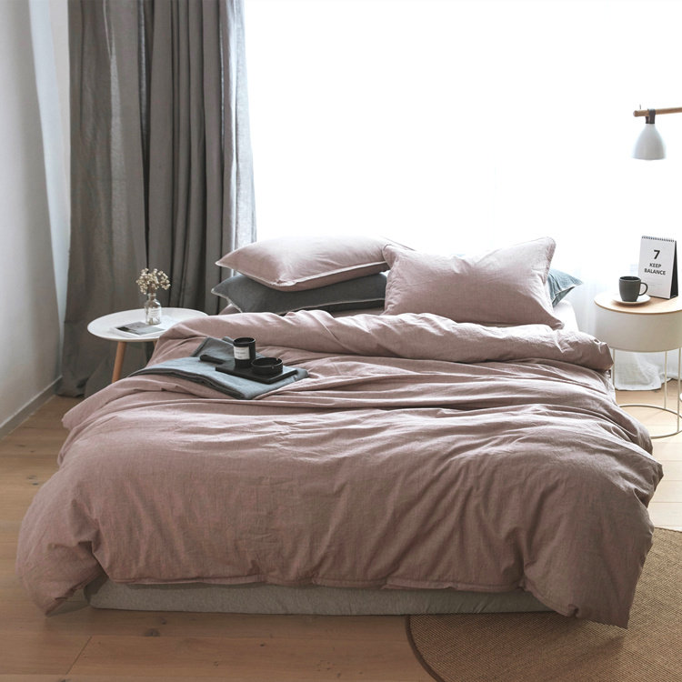 Nordic minimalist style cotton-dyed washed cotton four-piece set of pure cotton shell edge bed sheet double quilt bedding
