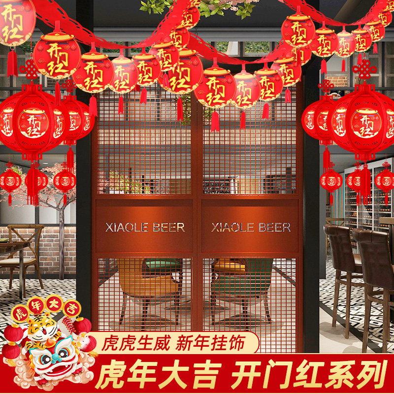 2022 Year of the Tiger New Year's Opening Store Celebration Good Opening Workplace Decoration Decoration Pull Flower Lantern Hanging Flag Pendant