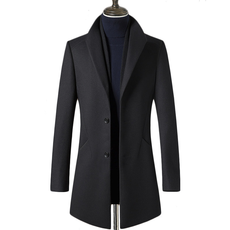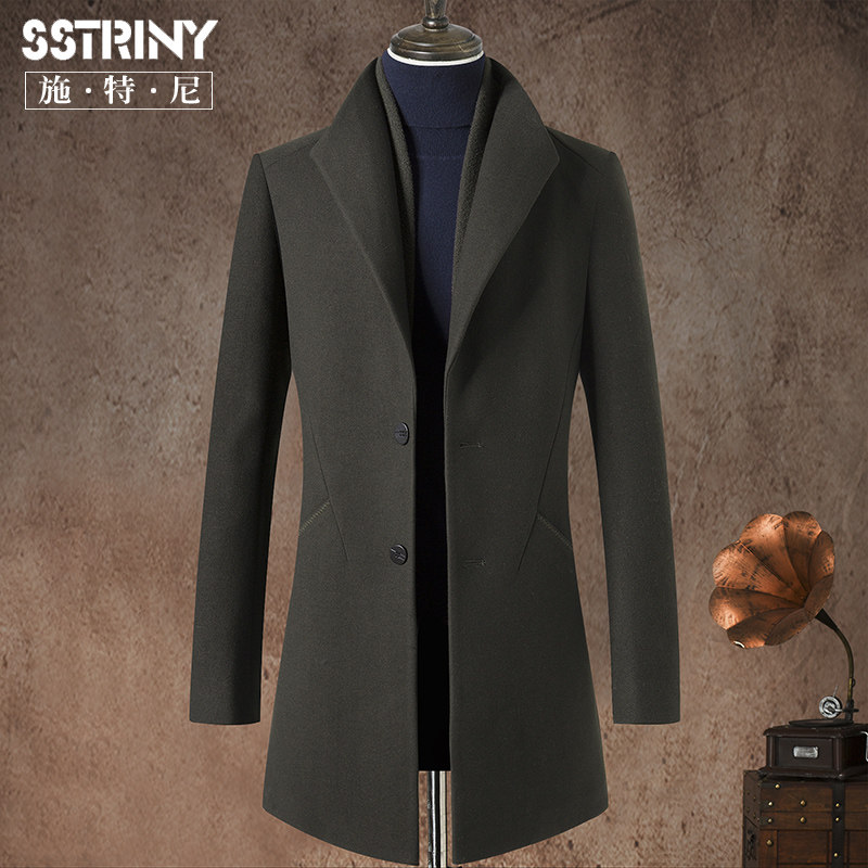 Stella autumn and winter men's coat lapel medium and long version of wool coat Scarf collar wool coat coat jacket