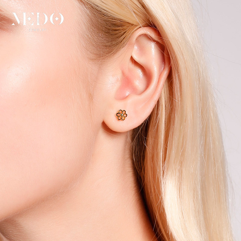18K golden ear nails golden sun flower Japanese Korean temperament simple rose gold small flower ear gift
