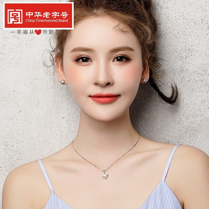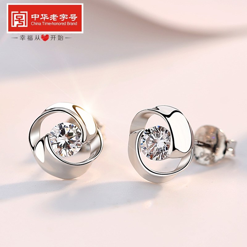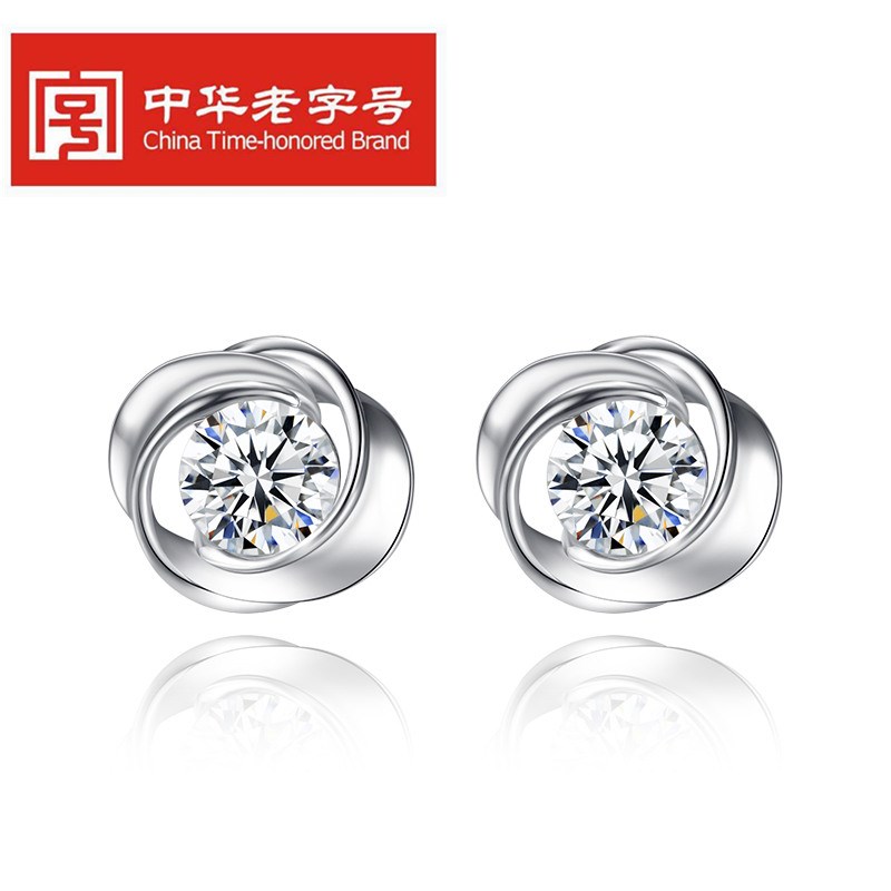 Old Fengxiang and Pt999 platinum earshot female 2022 new white gold earrings Diamond Earrings Birthday Gift